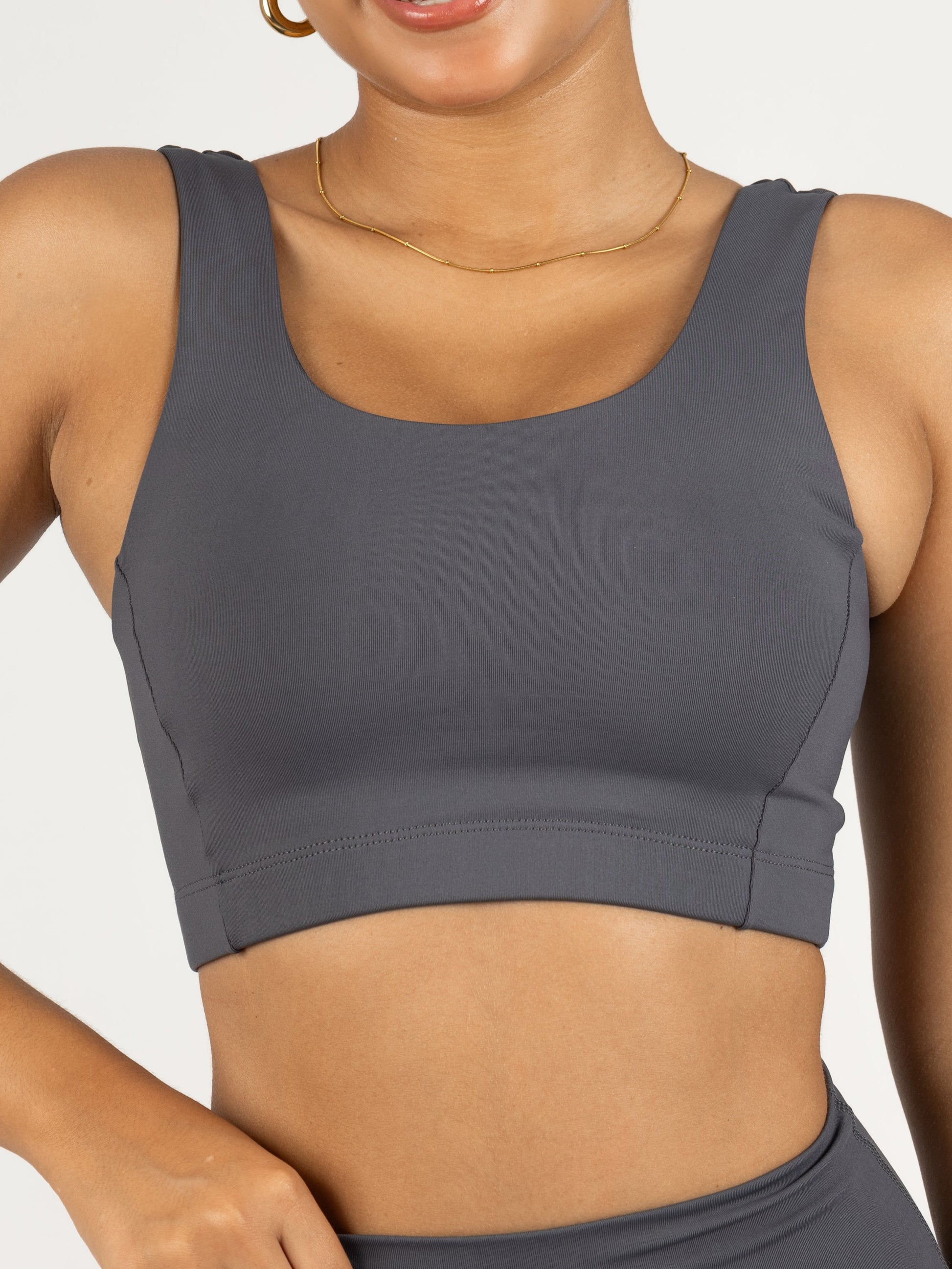 El Top Essential tiene un escote redondo que le da un toque básico pero bonito, perfecto para todo tipo de entrenamiento, ya que gracias a nuestra banda elástica debajo del busto y a sus tiras anchas, da mayor compresión y soporte. Definitivamente, un indispensable para entrenar, verte bien y sentirte aún mejor.